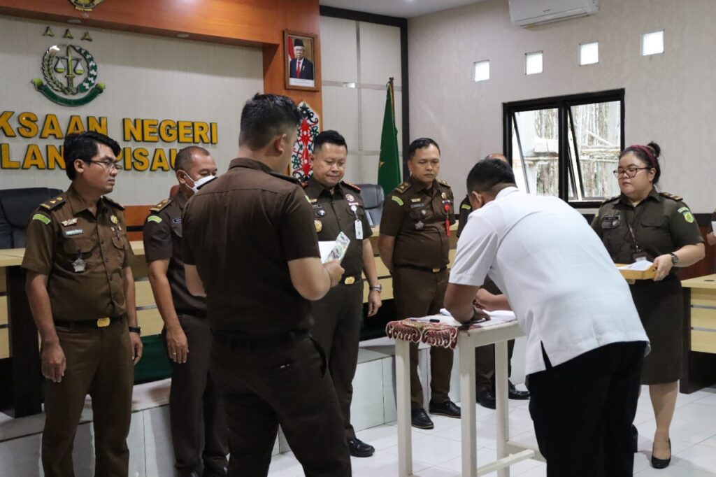 Kepala Kejaksaan Negeri Pulang Pisau, Dr. Priyambudi, S.H., M.H. memimpin kegiatan penandatanganan kontrak PPNPN ( Pegawai Pemerintah Non Pegawai Negeri ) bersama dengan Kasubagbin, Mandau Bakti, S.H., Kasi Perdata dan TUN, Fuat Zamroni, S.H., Kasi Tindak Pidana Umum, Harisha Cahyo Wibowo, S.H., Kasi Tindak Pidana Khusus, Achmad Riduan, S.H., yang bertempat di Aula Kantor Kejaksaan Negeri Pulang Pisau, Senin (09/01/22).